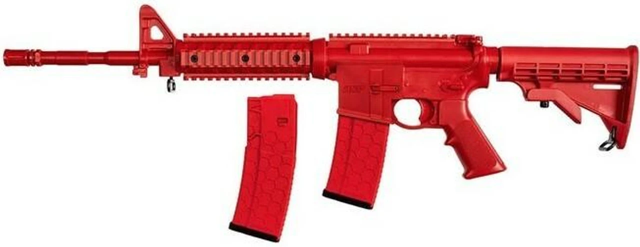This latest generation-Enhanced Red Guns-have all the safety benefits of the iconic originals, with the addition of functioning magazine releases and removable magazines. This allows for realistic reload and manipulation drills, with zero risk. Like the standard models, the new drop-mag models feature our proprietary, virtually-indestructible polymer formulation, with internal steel reinforcement. This M4 Enhanced Red Gun comes with two magazines.