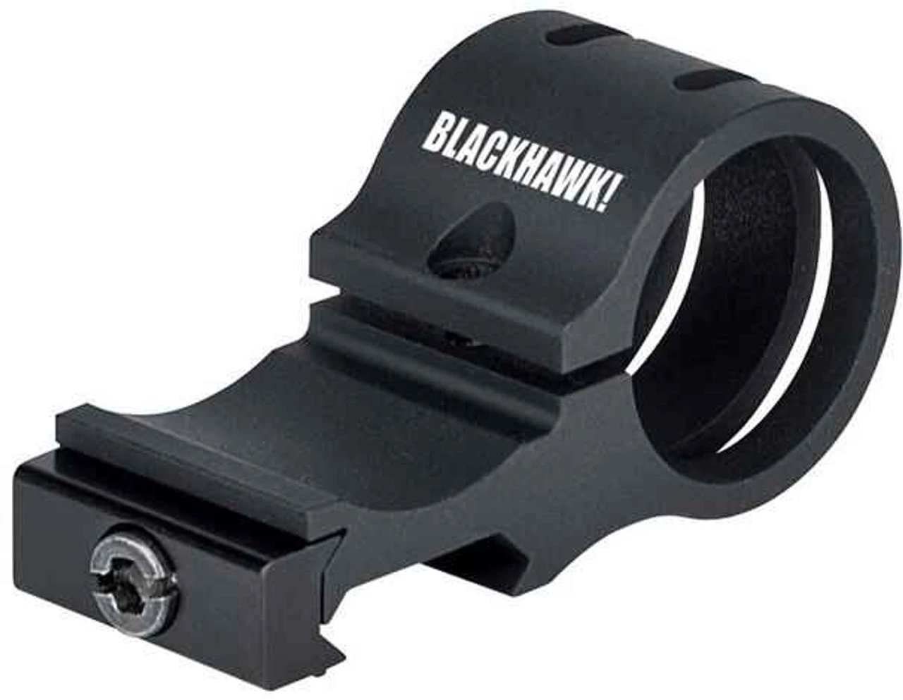 The Blackhawk Offset Flashlight Rail Mount is compatible with most 1-inch flashlights, the offset mount easily attaches to Picatinny rails at an optimal angle for tactical use.
