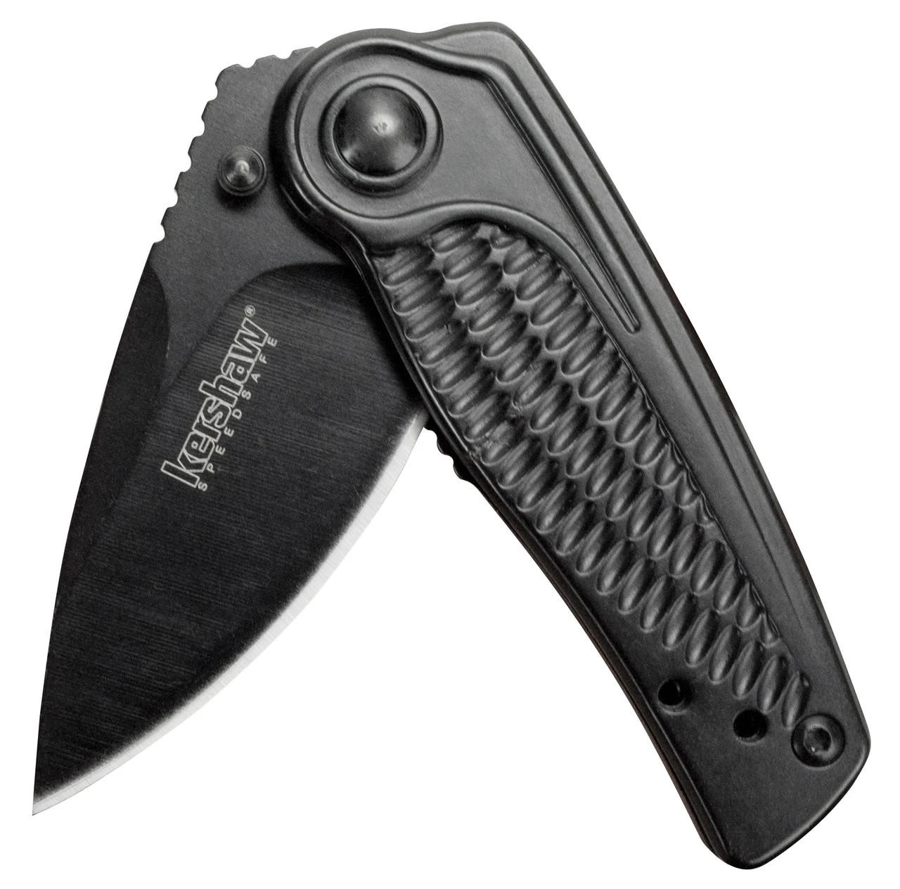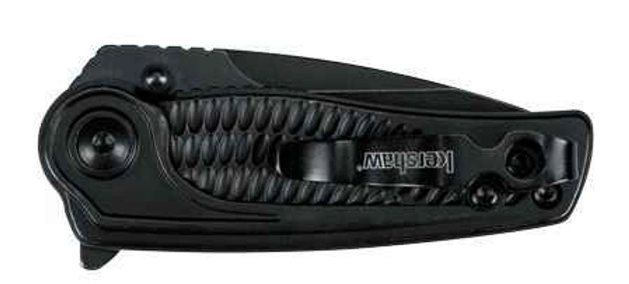 The Kershaw Spoke Flipper Knife 1313BLK features a 2 inch blade, but even with such a small blade, this knife packs a punch. It’cuts through tasks quickly and easily because the big belly blade gives plenty of cutting surface area even though the overall blade length is shorter. The knife features the SpeedSafe assisted opening and the built-in flipper which ensures an easy a fast open. The flipper is slightly oversized and doubles as a finger guard when the blade is opened. The steel handle features an unusual textured pattern that also provides a solid grip on this smaller knife. Black-oxide coating gives it a great look and a sturdy liner lock secures the blade open during use.The Spoke has a reversible, deep-carry pocketclip and a black-oxide coated blade stop.