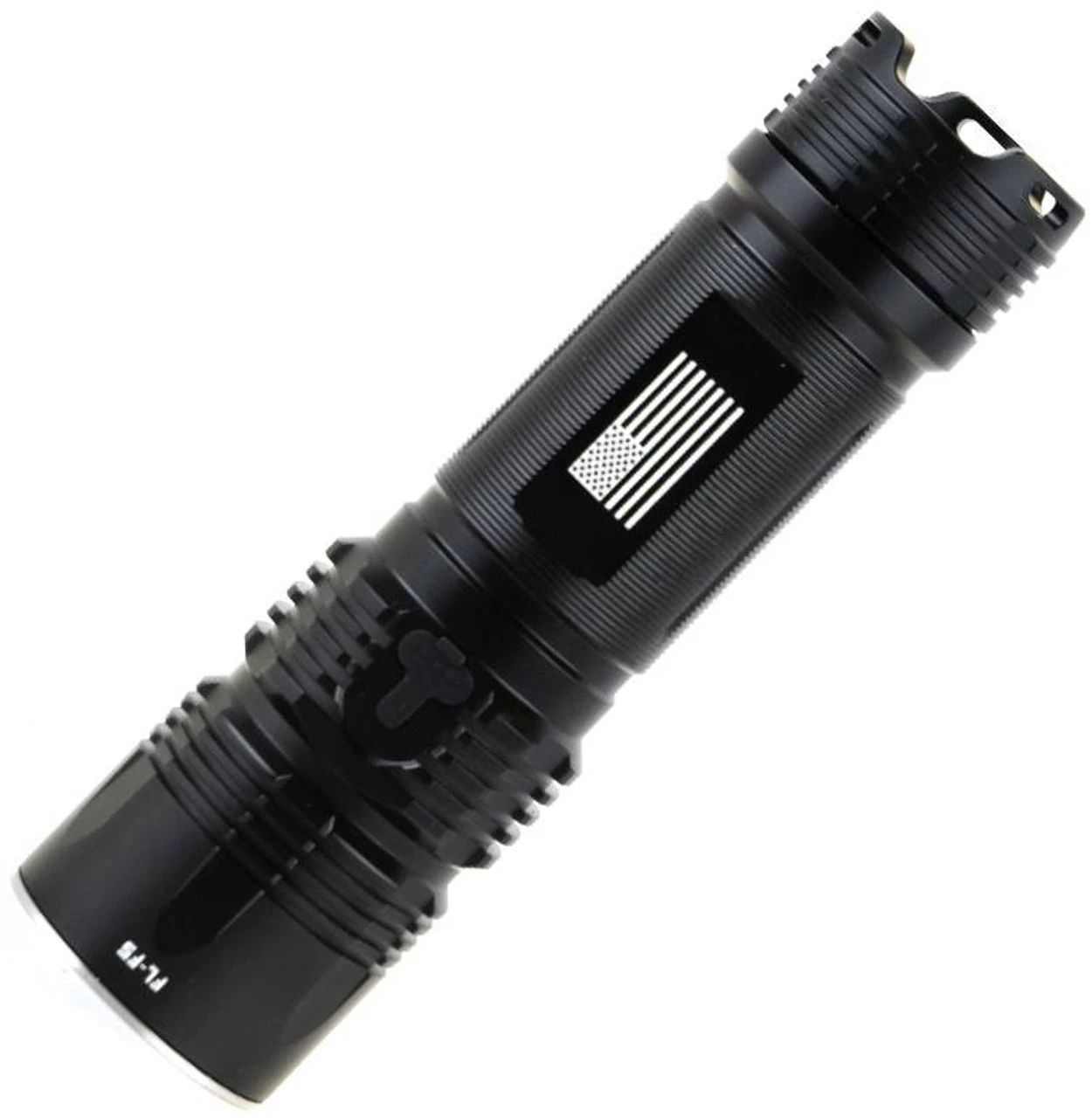 The LA Police Gear F5 3,600 Lumen Tactical Flashlight features a CREE XHP70 LED, powered by an included 26650 Rechargeable 4500mAh battery. The F5 Flashlight has four output levels (Turbo, High, Medium, and Low), as well as Strobe and SOS functions. It has a power outlet for use as a portable power bank for cell phones and comes with a Micro USB Keychain adapter. This tactical flashlight is perfect for everyday carry, traveling, camping, and other outdoor activities.