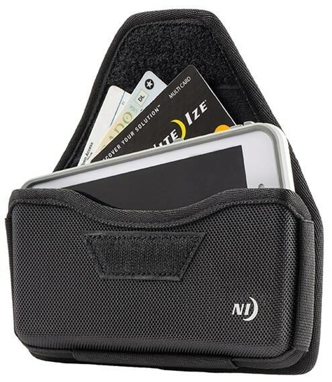 The Nite Ize Clip Case Hardshell Universal Rugged Holster keeps your phone protected from the elements and accessible at your side. Constructed of high-density EVA foam to provide protection from bumps and shocks with ballistic nylon providing additional rugged protection. Available in two models, either vertical or horizontal, the Clip Case Hardshell is designed with elastic side panels that accommodate most phone sizes, with or without a case. This holster uses a strong hook-and-loop closure, shields your device from impacts and the elements, and features a fixed-position rugged clip that attaches securely to waistbands, belts, or backpack straps. An internal pocket holds credit cards, ID, and cash to keep your valuables safe, secure, and conveniently accessible.