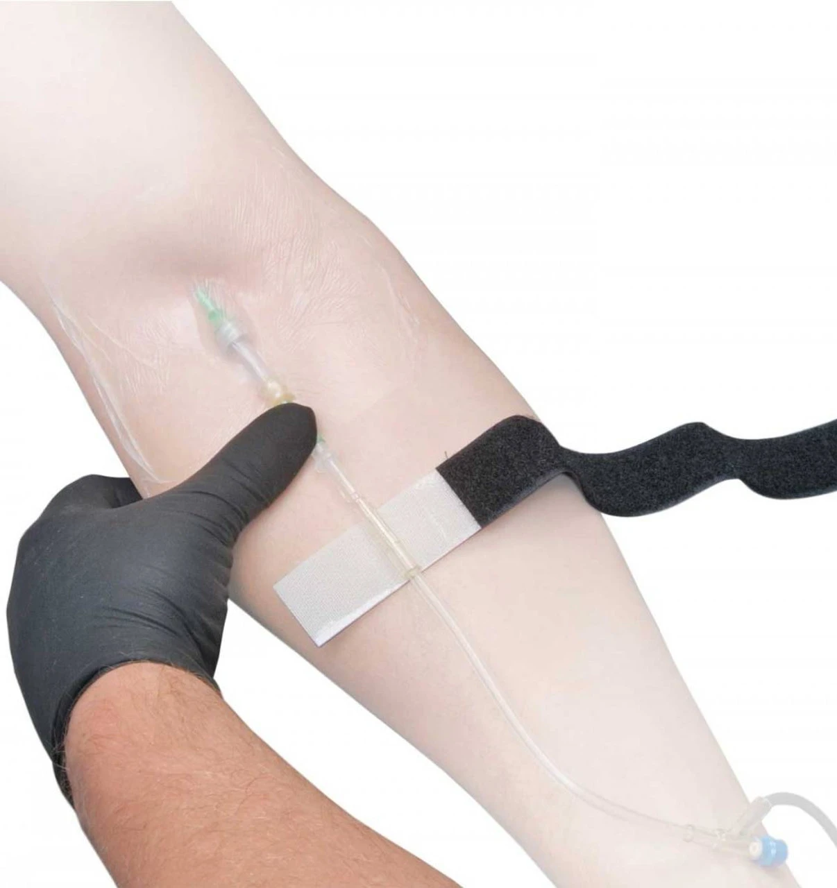 - Secures IV tubing on wet skin