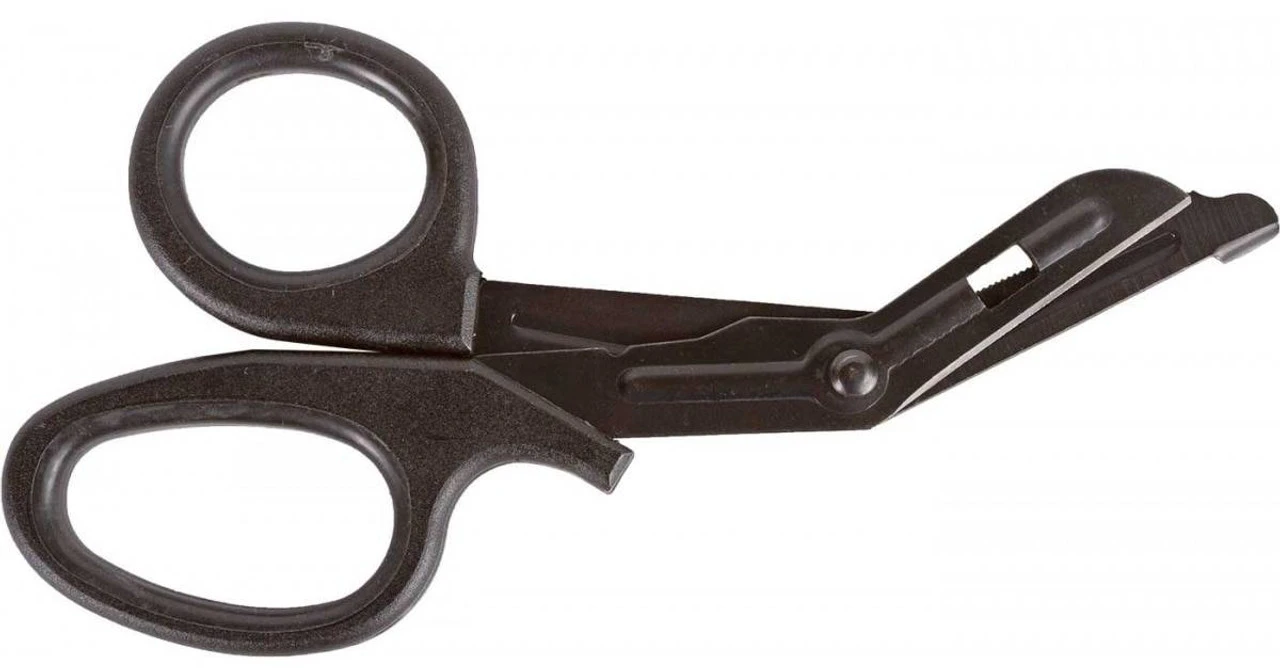 The North American Rescue Trauma Shears. These paramedic shears are made from premium-grade stainless steel. Their serrated lower edge cuts through the toughest materials. Their soft-grip, non-slip contoured handles provide maximum control, even when wet. Their clothing lift lip and rounded tip provide the ultimate in patient safety. These are black shears made to meet the challenges of casualty care with precision and dependability.
