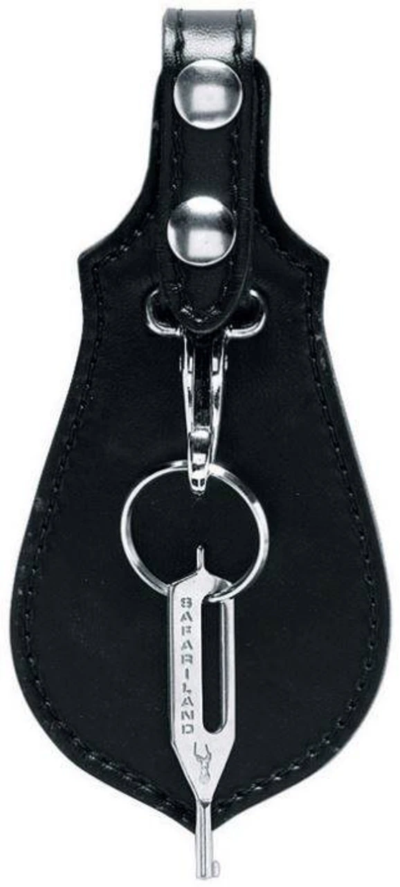 The Model 168 Key Ring consists of a heavy-duty metal spring hook matched with a protective flap to protect the leg and clothing from constant friction with the keys. A 2-snap design secures the unit onto the belt.