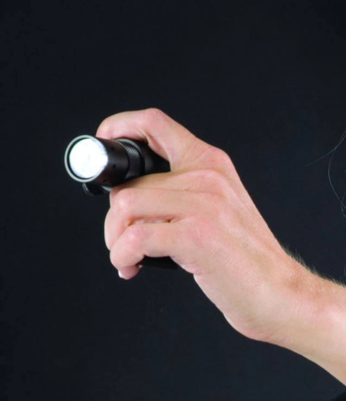 - Quickly transitions from standard hand-held flashlight to weapon illumination