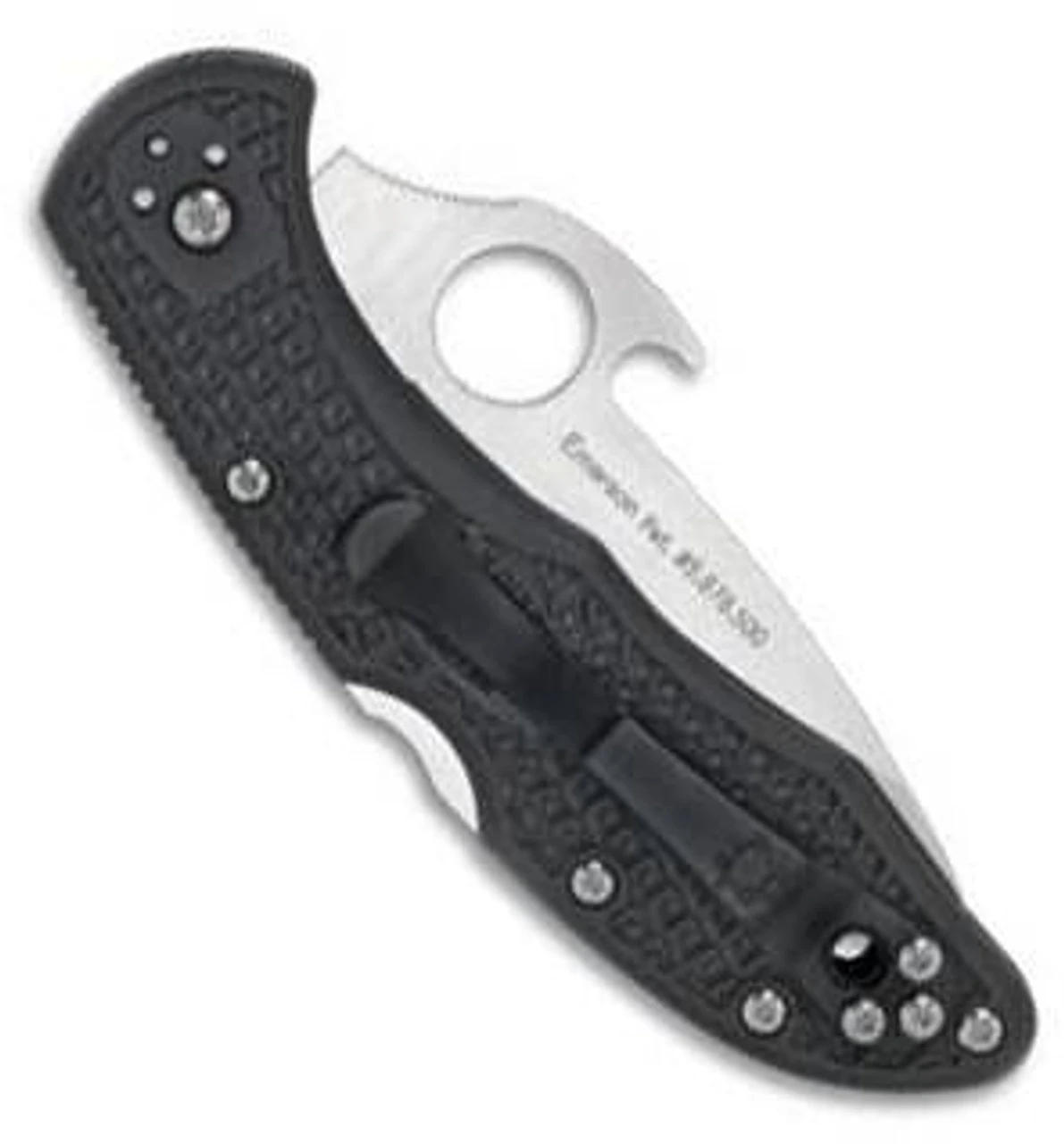 The Spyderco Delica 4 Emerson Opener Folding Knife features a blade made of VG-10 stainless steel and features jimping on the spine that extends from the ramp to the top of the handle. There is a thumb hole on the blade that allows ambidextrous one-hand opening. The lightweight FRN (fiberglass reinforced nylon) handle with skeletonized stainless steel liners and a strong back lock mechanism. The handle features screw construction for quick, simple cleaning and adjustment. The FRN scales utilize Spyderco’s patented Bi-Directional Texturing to keep your hand from slipping under pressure. The pocket clip is 4-way reversible for tip-up/down and left/right carry.
