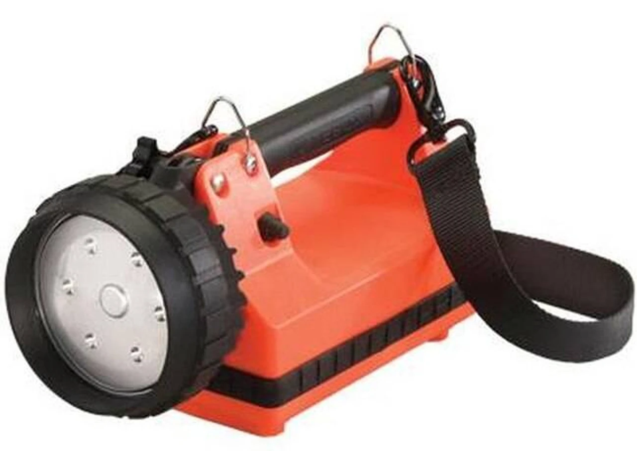 The Streamlight E-Flood Firebox Flashlight is an industrial-duty, rechargeable, portable lantern featuring power LED technology for high brightness, long runtime and high reliability. The E-Flood models use 6 LEDs and wide pattern reflectors to produce a uniform flood pattern. Jumper selectable high or low setting to allow selection of more light output or more runtime.