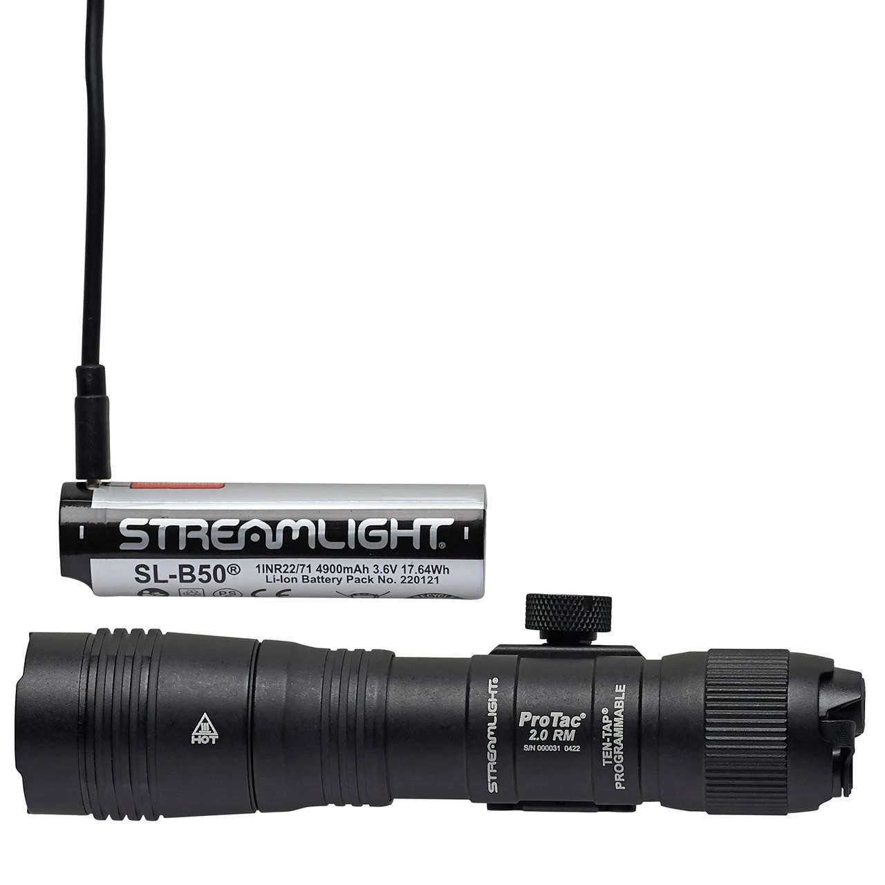 - Uses one (1) Streamlight SL-B50 protected Li-Ion USB-rechargeable battery pack (included)