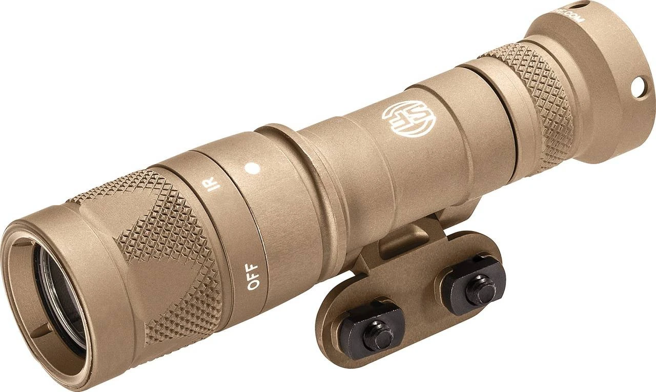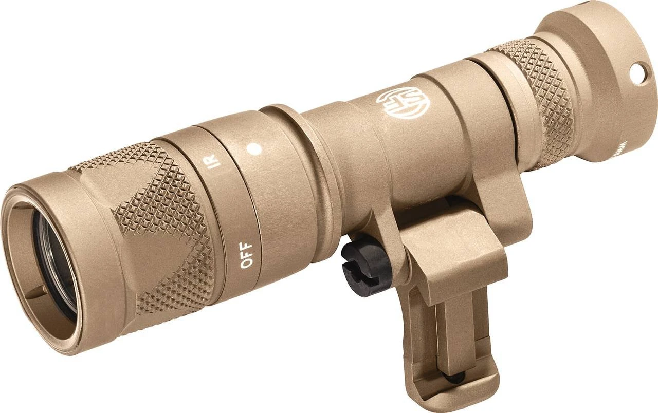 The Surefire Mini Infrared Scoutlight Pro Weaponlight, powered by one 123A Lithium battery, provides 250 lumens of brilliant white light or 100 mW of invisible infrared illumination for use with night vision devices with no need for IR filters or spare lamps. This weaponlight is constructed of high-strength aerospace aluminum with Mil-Spec hard anodizing for superior toughness and corrosion resistance. The SureFire Low-Profile Mount (LPM) delivers unprecedented unprecedented versatility by allowing the user to optimize the light’s position relative to the rail and allows for easy and secure attachment to any MIL-STD-1913 or M-LOK rail. Switch between white light, disable, and infrared modes by simply twisting the front knurled portion of the bezel. The Mini Infrared Scout Light Pro’s TIR lens, in either mode, produces a tight beam suited for close- to medium-range applications.Â