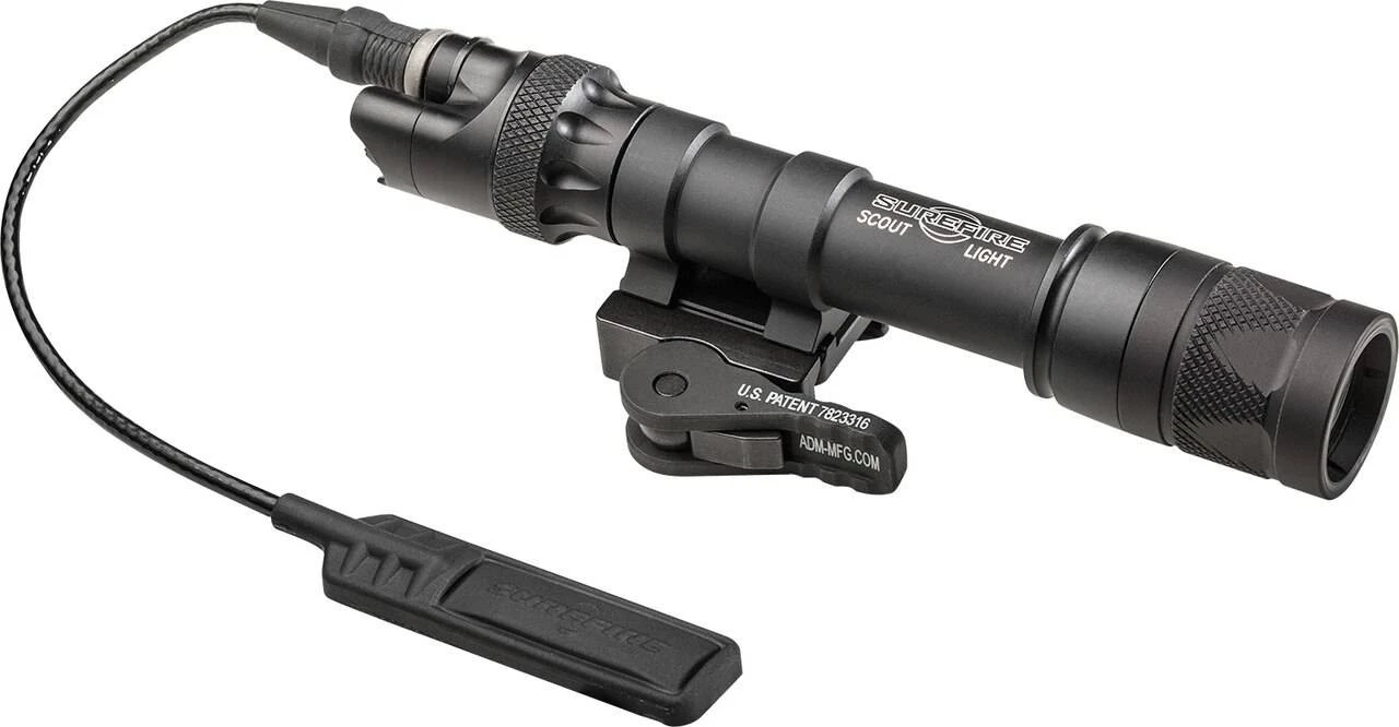 The M622V Scout Light is a lightweight, compact WeaponLight featuring a high-output white light and infrared LED in one sealed unit. In white light mode, a recoil-proof LED generates a versatile 350-lumen tactical beam capable of temporarily overwhelming an aggressor’s dark-adapted vision and disorienting him. In infrared mode, the 120-milliwatt LED produces a beam invisible to the naked eye, for use on stealth operations involving night vision devices – no filter required. Switching between the two lightspectrum modes is intuitive and easy, even on the fly, and is achieved by twisting a no-look, self-locking selector ring on the bezel. The low-drag M622V attaches quickly and securely to any MIL-STD 1913 rail – even out-of-spec rails via a field adjustable American Defense Manufacturing (ADM) throw-lever mount – and is activated by clicking its pushbutton tailcap switch or, for precision fingertip control without altering your grip on the weapon, by pressing its pressure-activated tape switch (both included). Constructed of lightweight aerospace aluminum with a hard anodized a Mil-Spec finish, and O-ring sealed to keep out the elements, the rugged M622V is built to endure combat-like conditions without any sacrifice in performance or weapon maneuverability. For sheer versatility, unprecedented reliability, and legendary SureFire quality, the M622V is the right choice for your weapon. Available only from SureFire.